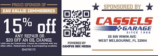 Cassels Garage is proud to serve West Melbourne and support the Eau Gallie Commodores. We’re committed to keeping your vehicle—and our community—moving forward, together.